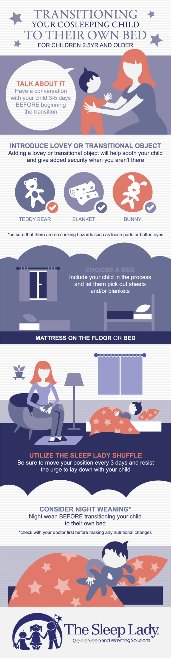 For more on this topic, please review Chapter 12 in my book, Good Night Sleep Tight, which is entirely devoted to gently ending the cosleeping relationship.