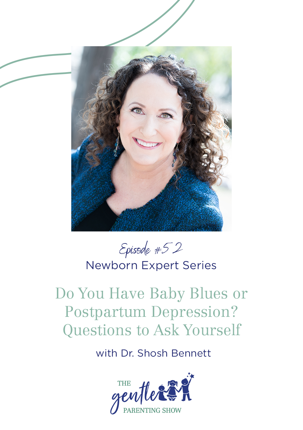 We are so excited for today’s Newborn Expert Series episode of the Gentle Parenting Show with Dr. Shosh Bennett. In today’s episode of The Gentle Parenting Show, Kim sits down with her longtime friend and colleague, Dr. Shoshana Bennett. If you’d like to hear Dr. Shosh’s first episode all about the myths of motherhood, listen HERE. Dr. Shosh, a clinical psychologist, is an expert on prenatal and postpartum depression and related mood and anxiety disorders. She is the author of the best-selling book “Postpartum Depression for Dummies”, as well as “Pregnant on Prozac”, “Children of The Depressed” and co-author of “Beyond the Blues.” Kim and Dr. Shosh discuss the difference between baby blues and postpartum depression with things to ask yourself and symptoms to look for.