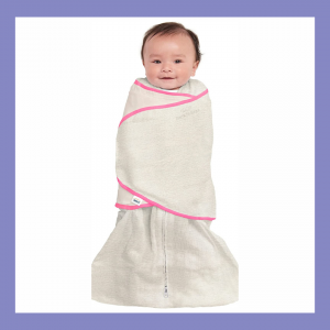 This temperature-regulating wearable sleep bag helps reduce the risk of overheating and keeps babies cool on warm nights. We love this because it includes an extra-long zipper so you can change your baby’s diaper easily while they wear the swaddle. It’s made from a hypo-allergenic and extra light fabric so your baby remains super comfy.