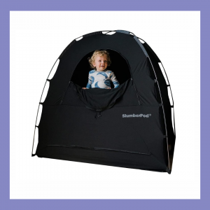 As children get older, it gets harder and harder to room share, which can make traveling difficult! A SlumperPod is a portable blackout canopy that fits over cribs and toddler beds so your little one can have complete darkness. Trust us, this is a travel necessity!