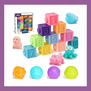 Toddlers get into everything, so it’s important to keep their toys safe and durable. These soft building blocks are easy to build, knock down and build all over – a toddler’s favorite activity! Adding colors and numbers to these blocks helps build other skills too.