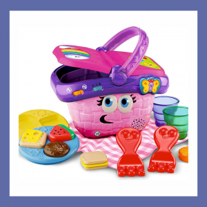 This toy encourages your toddler to build motor skills as they sort, match, stack, empty and fill the play basket. It helps toddlers learn fine motor skills, shapes, and colors and encourages pretend play. Every piece stays right inside the basket, making cleanup a breeze.