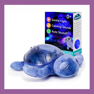 Some children begin to develop a fear of the dark early on, and you can help to combat this with a fun and soothing nightlight that also doubles as a lovey. If your child has trouble falling asleep, consider something like the cordless, soft, Cloud B Turtle. The rechargeable turtle shines lights on the ceiling and makes soothing music and nature sounds to lull your little one to sleep.